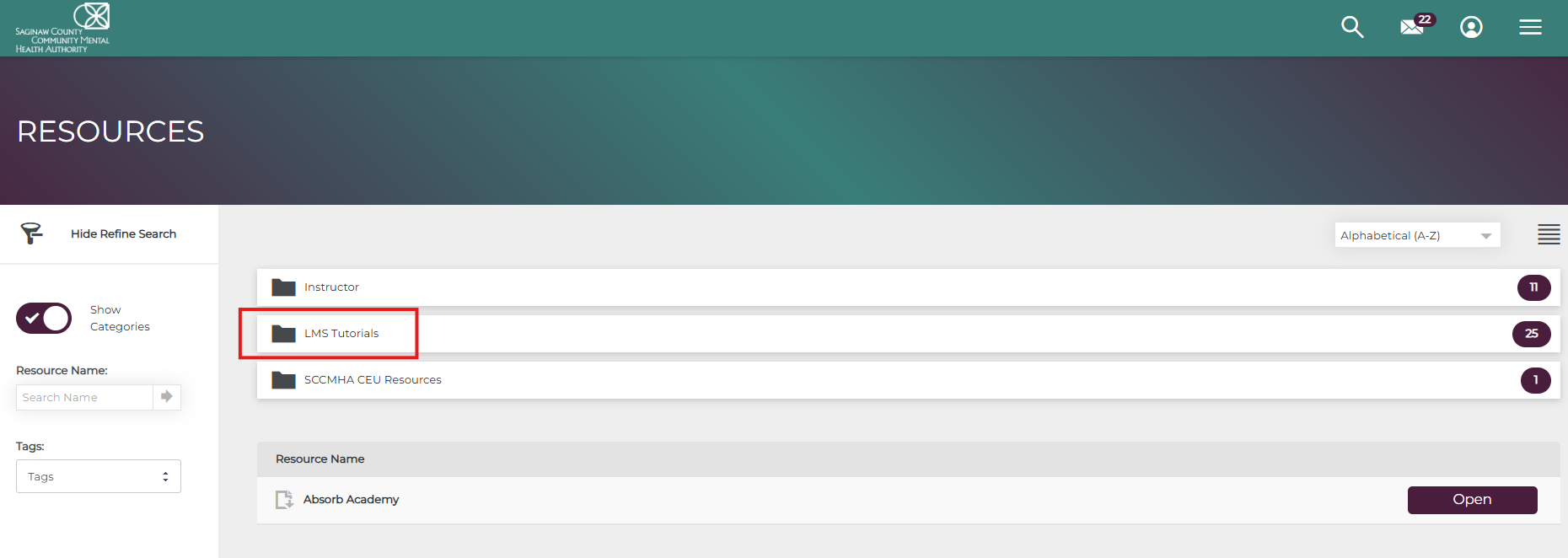 Many issues can be resolved by reviewing resource tutorials in the LMS